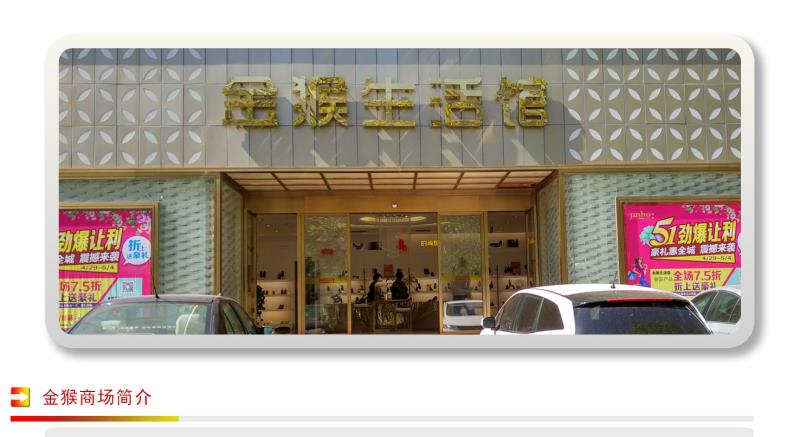 ★金猴商场有限公司成立于1998年,专业销售金猴皮鞋、皮具、服装,年销售额5000多万元。2003年以来连年被威海市消费者协会评为“消费者满意单位”,先后被市妇联、省总工会授予“巾帼文明示范岗”、“富民兴鲁先进班组”等称号,是来威游客购物的理想之地。