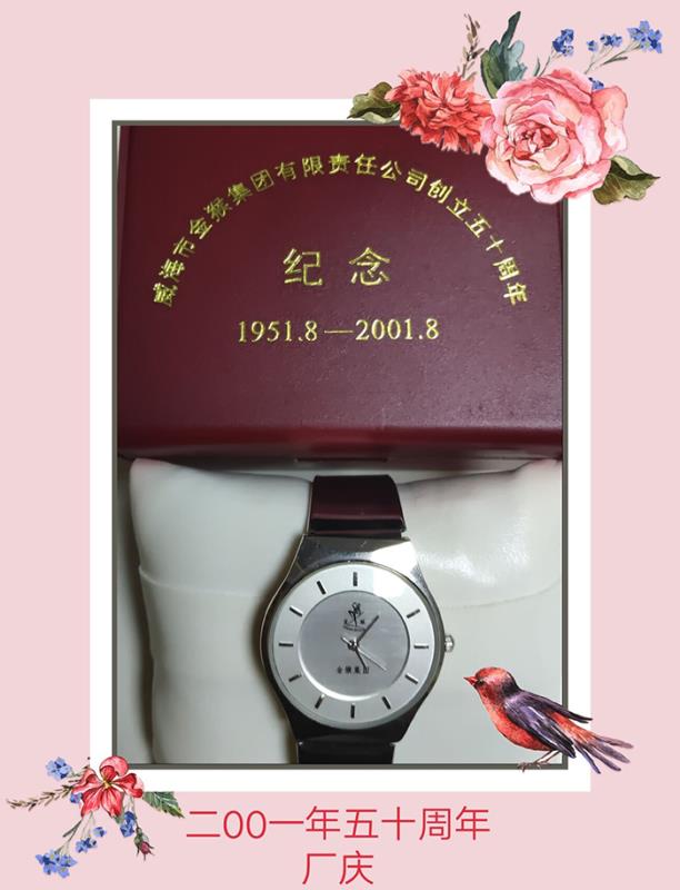 记忆三:镀金属相牌和情侣手表——2001年金猴创立50周年时企业为职工定制的署名镀金属相牌和情侣手表。在过去的十年里,企业得到了高速发展,由一个名不见经传的单一制鞋小厂,发展成为家喻户晓涉足多个领域的集团公司。随着“穿金猴皮鞋,走金光大道”的广告语通过中央电视台黄金时段传遍大江南北,北京、太原、沈阳、济南等全国各地的百货大楼皮鞋专柜前购买金猴皮鞋的人接踵而至,人山人海,互相簇拥,只为了能够买到一双金猴皮鞋。商场的采购人员提着现金开车到金猴排队提货,有的竟排半个月的队才能提到现货。主业繁荣为企业发展打下了坚实的物质基础,这期间企业的名称由“威海市皮鞋工业集团公司”改为“威海市成人论坛 公司”,先后合并了“威海市皮件二厂”、“威海市皮件一厂”,投资成立了“成人论坛 进出口贸易公司”、“成人论坛 房地产开发公司”等子公司。1998年,企业名称改为“威海市成人论坛 有限责任公司”,实施了股份制改造,发生了脱胎换骨的变化,干部职工人人持股,干劲空前高涨。每一次企业名称的改变,都见证了企业在发展的过程中登上了一个新台阶。因此,2001年为庆祝成人论坛 创立五十周年,鼓励广大干部职工干事创业积极性,集团领导决定给每位在职和离退休的干部职工私人定制一块署名镀金属相牌,并配发一对情侣手表,以表达对成人论坛 创立五十周年的永久纪念。