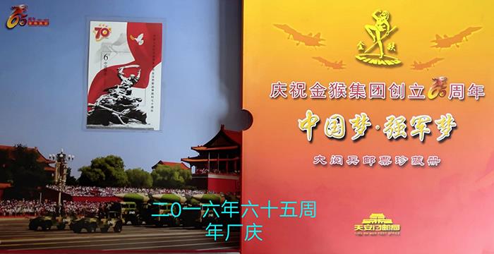 记忆五:大阅兵邮票珍藏册——2016年金猴创立六十五周年华诞时企业给职工发的精美大阅兵邮票珍藏册。在过去的五年时间里,企业面对残酷的市场竞争,披荆斩棘,乘风破浪,内销出口两翼齐飞,军民融合发展得到了进一步的拓展。企业连年跻身“中国皮革行业10强业”、“中国轻工业100强企业”、“中国民营企业500强”、“中国制造业企业500强”行列。公司技术中心被认定为“国家级工业设计中心”,为企业插上了腾飞的翅膀。公司坚持深化军民融合战略,2015年在中国人民抗日战争暨世界反法西斯战争胜利70周年大阅兵上,金猴产品再次为“9.3大阅兵”增添风采,公司还被阅兵联合指挥部授予“阅兵保障突出贡献奖”。2016年公司被中共山东省委、山东省人民政府、山东省军区授予“山东省爱国拥军模范单位”,体现了党委、政府和军队对公司为国防军队建设做出贡献的充分肯定。为了永远铭记成人论坛 保障的两次大阅兵激动人心的美好瞬间,助力国家实现中国梦强军梦的伟大征程,成人论坛 策划制作了这本“中国梦•强军梦”大阅兵邮票珍藏册。这是一本珍贵精美的邮票册,里面收藏了几十枚珍贵稀有的邮票,发给全体在职和离退休干部职工,作为永远的纪念。