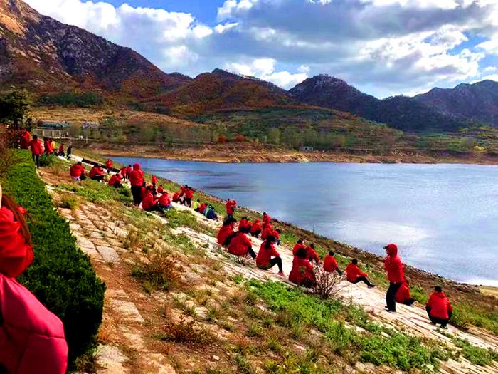 本次徒步大赛以5人为一组,以小组成员全部到达终点记录小组成绩,小组队员只有在比赛过程中相互扶持、同心协力,才能取得最终的胜利。比赛伊始,大家都兴致高昂,健步如飞,你追我赶的使尽浑身解数,争取第一。当比赛进行到2公里时,各组之间的距离开始逐渐拉大,经常运动的员工便从大部队中脱颖而出,形成了领军集团。最终,一车间组以34分的成绩取得冠军,二车间组和销售组紧随其后获得亚军,四车间两个组和二车间一个组获得季军。比赛结束后,大家边探讨徒步心得,边从水库大坝向下走,欣赏里口山的优美风光。入秋后的里口山层林尽染,随处可见一片片五彩斑斓的迷人景象。在湛蓝天空的映衬下,一颗颗鲜红的苹果、金黄的柿子挂在树上显得格外诱人。蓝天、白云、村庄、大山组成了一幅独特的乡村画卷。