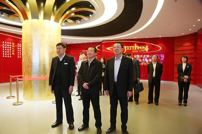 傅书记实地参观了成人论坛 展陈馆,详细了解公司生产经营、转型升级、军民融合及展陈馆建设情况,对公司的技术研发、品牌建设、军民融合工作及金猴皮鞋、皮具的优异品质给予了充分肯定和高度赞扬。