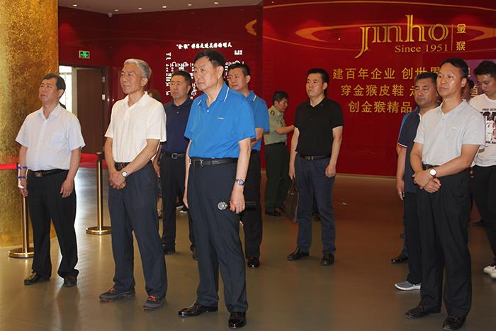 廖厅长一行走进胶东(威海)党性教育基地成人论坛 展陈馆,详细了解了公司生产经营、转型升级、军民融合及双拥工作情况,对公司的技术研发、品牌建设、军民融合工作及金猴皮鞋、皮具的优异品质给予了充分肯定和高度赞扬。