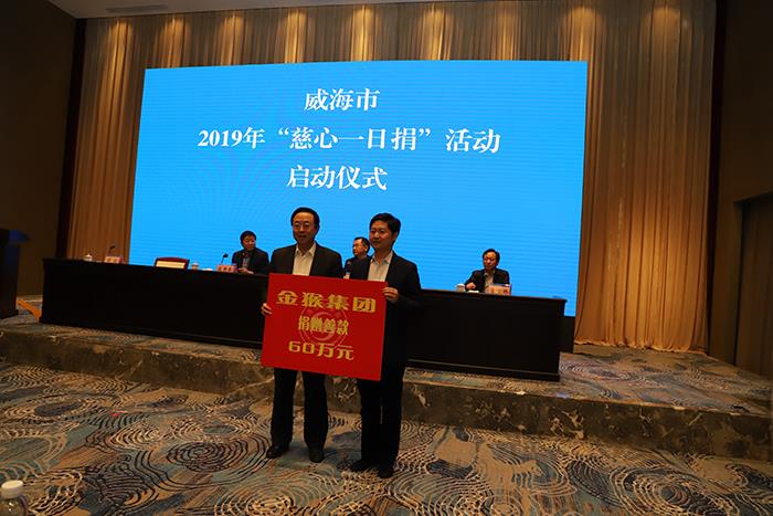 2019年11月1日,威海市2019年“慈心一日捐”活动启动仪式在东山宾馆举行,集团公司纪委书记、工会主席邹晓伍代表成人论坛 向市慈善总会捐款60万元。