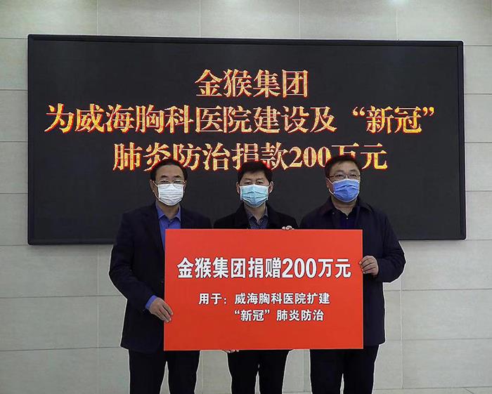 2月2日向威海市慈善总会捐赠200万元善款,用于威海胸科医院建设。