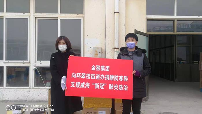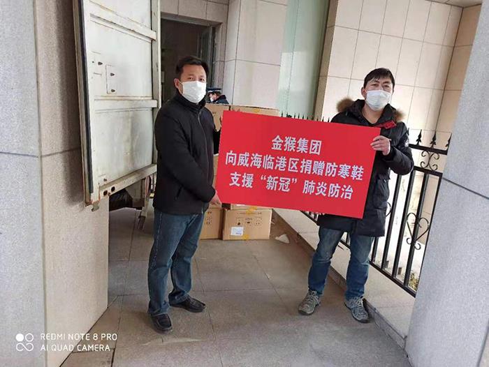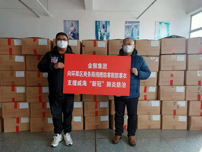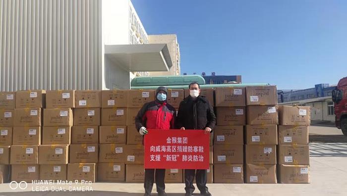 2月3日至今先后向威海市环翠区、高区、经区、临港区、文登区、荣成市、乳山市、南海新区捐赠防寒服15000多件、防寒靴20000多双,价值达1500多万元,把温暖送给广大户外一线防疫人员。