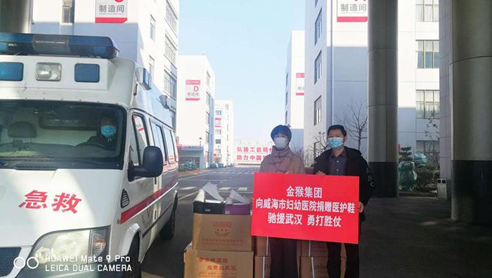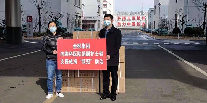 2月3日向威海市胸科医院捐赠医护鞋,2月10日向威海妇幼医院驰援武汉医疗队捐赠医护鞋,把对防疫医疗人员的关爱从威海延申到武汉。