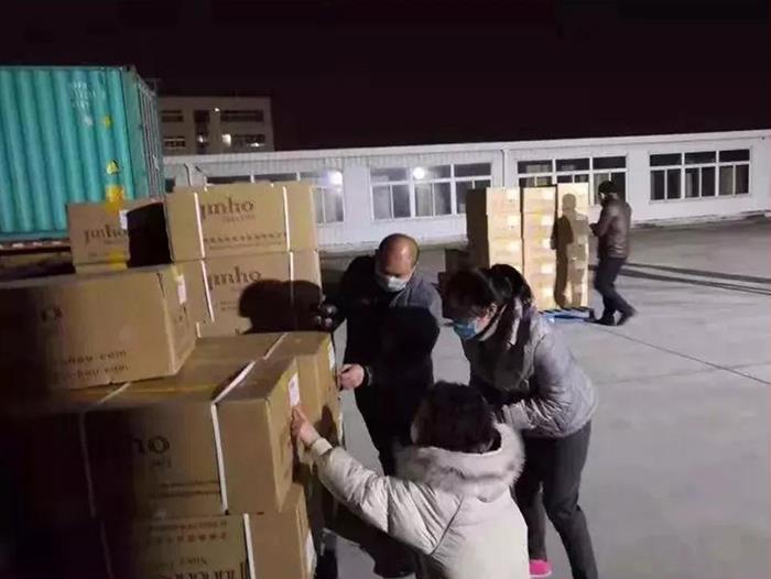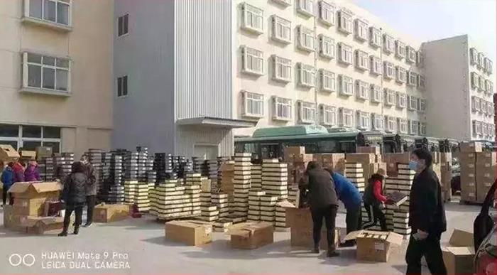 在物资捐赠过程中,因工厂还没有正式复工,成人论坛 就组织党员干部分工合作、加班加点、清点库存、筹集货源、按需组装、完成配送,尽可能第一时间将温暖送到户外一线防疫工作者手中。