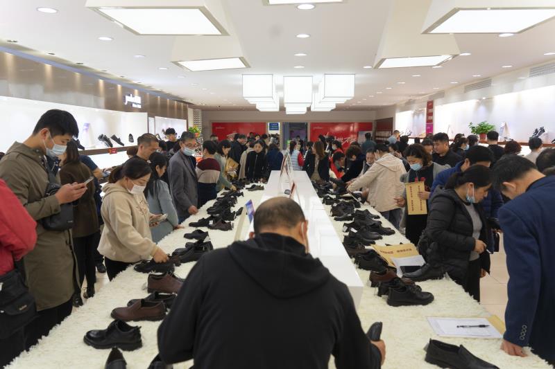 上午九点,选样活动正式开始。经销商们一走进大厅,目光随即被颇具特色的展厅布置所吸引,大厅中心分三部分陈列,包括男鞋区、女鞋区和陈列展示区,柔和的灯光让整个大厅显得更加美观温馨。此次新品发布会上春季新款男鞋和女鞋样品丰富、时尚新颖、色彩多样,无论是女士通勤、休闲款,还是男士商务、休闲款,应有尽有。其中,老爹鞋、小白鞋、乐福鞋、飞织鞋等休闲款式面向年轻顾客群,满足了经销商多方位的选择需求。