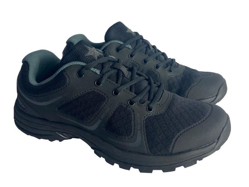 冬季工作鞋采取加强鞋底,具备一定的防穿刺功能。工作鞋样式为低腰五眼系带式,前帮由涤纶长丝鞋面布压烫聚氨酯胶膜制成,后帮为热塑性聚氨酯成型后包跟,鞋里为涤麻无纺布,大底由黑色发泡EVA/硬质TPU/密实橡胶组成,帮底采用胶粘工艺,冬季工作鞋设置网加绒工艺。