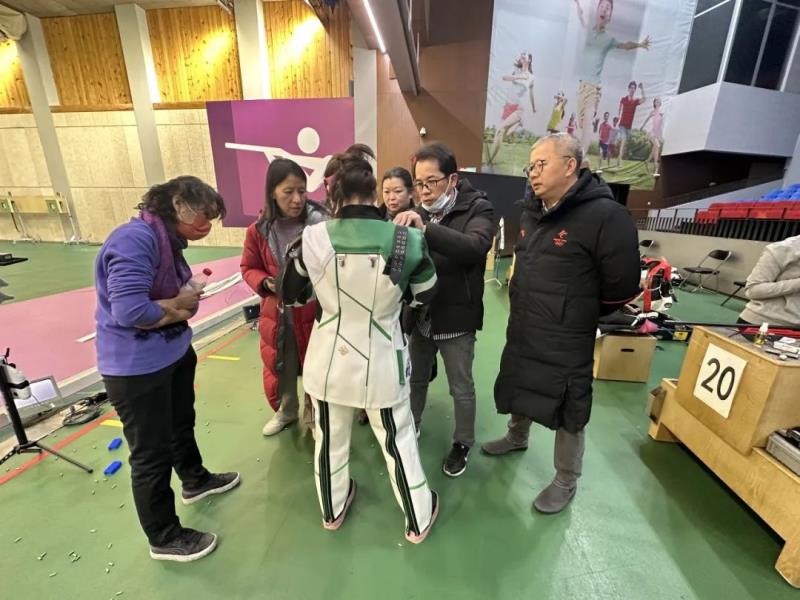 步枪射击运动员的比赛服及鞋装备由特制的帆布和牛皮等材料制成,需要达到国际射击联合会制订的硬度、厚度等标准后方可穿着参赛。此前,国家射击队一直使用国外比赛服及鞋装备,为推动国产比赛服及鞋装备这一“卡脖子”问题的解决,自2022年起,北京服装学院便与成人论坛 合作,开始了包括射击比赛服、射击鞋等比赛装备的研发与生产,历时两年,科研团队通过实地调研以及人体测量、姿态分析、版型对比、力学关系等科学研究,针对射击比赛服及鞋关键技术与工艺开展系列攻关,终成正果。