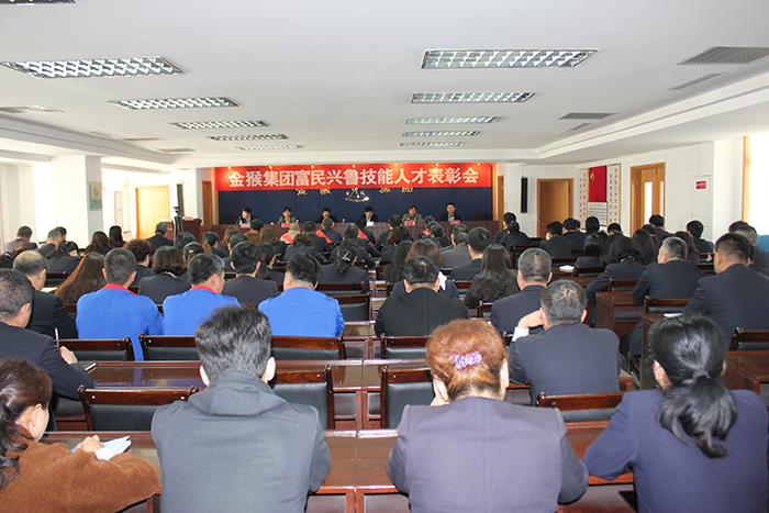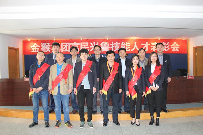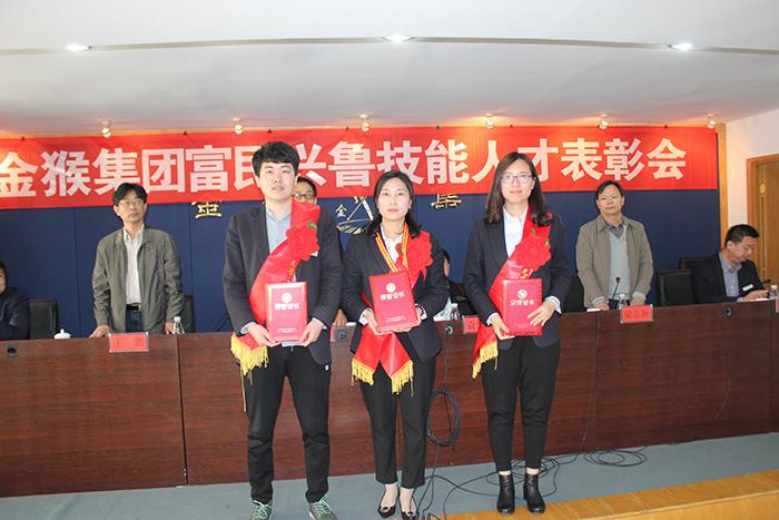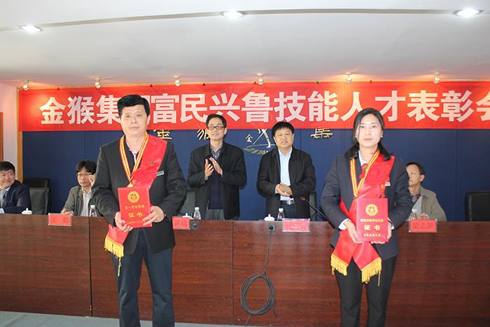 4月25日,山东省轻工联社、山东省轻纺工会、山东省皮革协会联合在我公司召开技能人才表彰大会,隆重表彰获得行业殊荣的六名金猴员工。省轻工联社党组成员、副主任周新瑞,省轻纺工会主席袁宗贵,省皮革协会会长梁志新,省轻工联社机关党委调研员王鹏,集团公司董事、副总经理岳国威,副总经理柳泉森出席大会并为获奖者颁奖。